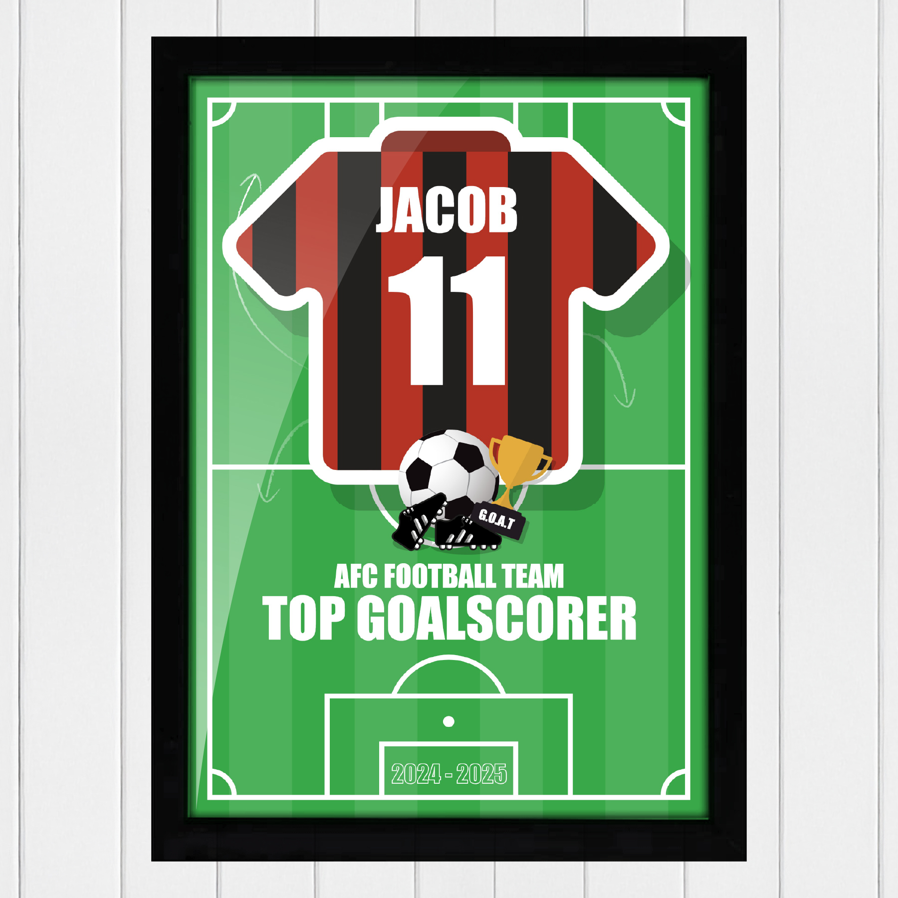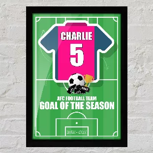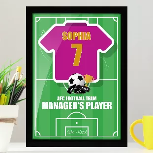 • Fully Personalised – Customise the player’s name, shirt number, kit colours, team name, and award title (e.g. Manager’s Player, Players’ Player, Most Improved, etc.).