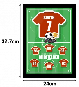 Celebrate the love for football with this custom A4 Personalised Goalkeeper Print! professional photo print. This dynamic artwork showcases a football pitch design featuring a goalkeeper jersey with your chosen name and number, complemented by skill ratings in categories like reflexes, handling, diving, and more. Perfect for football enthusiasts of all ages, it celebrates the unique attributes of the “World’s Greatest Goalkeeper.” The vibrant green pitch background is brought to life with energetic visuals like gloves, trophies, and footballs. You can even customise the goalkeeper glove colour for an extra personal touch. Whether displayed with or without a frame, this print is a fantastic gift for birthdays, sports fans, or anyone who takes pride in their goalkeeping journey. Perfect for goalkeeping stars, this print is a must-have for those who protect the net with pride!Key Features: